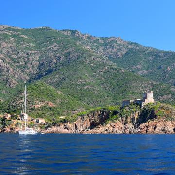 Les excursions en bateau incluent souvent un passage près de Capo Rosso, célèbre pour sa Tour de Turghiu, qui domine les falaises environnantes. Depuis la mer, vous aurez une vue imprenable sur cette tour génoise et sur les falaises vertigineuses qui l'entourent.
